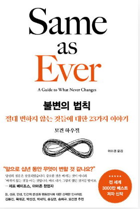 모건 하우저의 신작 "불변의 법칙"은 2023년 국내 독자들 사이에서 큰 인기를 모으고 있다. 이 책은 제목 그대로 우리 삶과 세상에서 변하지 않는 불변의 법칙들을 다루고 있다.